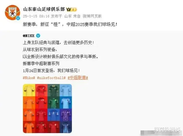 紧接着,9点16分,泰山队又扔了个炸弹——新赛季球衣曝光了!嘿,这球衣,橙色为主颜色,看着就喜庆、有活力!你瞅瞅,这筹画,前卫大方,还带着咱泰山队的传统元素,一眼望去,就知说念是咱山东泰山队的!官方还放话了:“新赛季,新征‘橙’,中超2025赛季我们球场见!”这话听着就提气儿,球迷们心里头阿谁慷慨啊,就等着新赛季看泰山队大展武艺了!