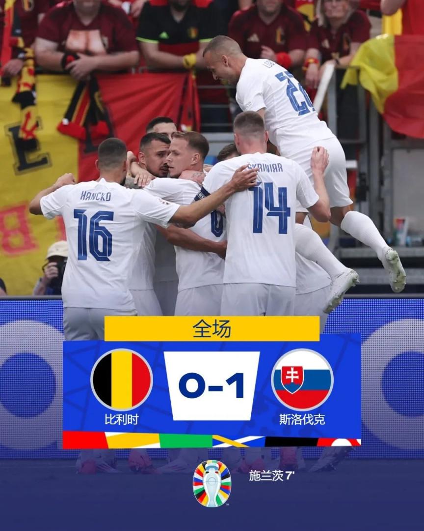 0:1不敌斯洛伐克队,比利时队各项赛事15场不败被斥逐。这亦然本届欧洲杯开赛迄今最大冷门。
