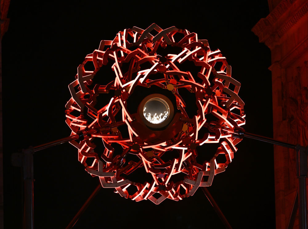 在米兰的和平拱门,在科尔蒂纳的迪博纳广场,两座通常的主火把台同期被点火。主火把台的外不雅灵感来自意大利文艺回复大师莱昂纳多·达·芬奇绘画的几何绳结图案,其结构汲取可变几何打算,可完毕动态开合,就像孩子们玩耍的“魔术伸缩球”。当被点火的一瞬,主火把台名义呈现出阳光般的金色质感。