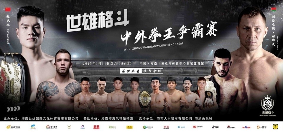 2025年1月11日体育赛事直播,WHS世雄格斗中外拳王争霸赛将在海南省三亚市巨大举行。本次赛事由海南世雄外洋文化体育赛事有限公司左右,由海南椰海风精酿啤酒特约缓助,本赛事得到了三亚大树汽车租借有限公司、海旅免税城、等单元特地相沿。